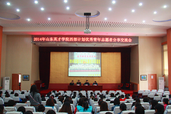 4月21日上午,“奋斗的青春最美丽”2014年西部计划志愿者经验交流分享会首场活动在南校区学术报告厅举行。我校2013届毕业生、已参加大学生志愿服务西部计划的三位志愿者吕辉军、李喜武、许聪在活动上分享了他们在西部志愿者的岗位上的经历和趣事。校团委副书记王鹏飞,各二级学院基层团委书记、团委专职团干部及来自各二级学院300余名学生聆听了分享会。