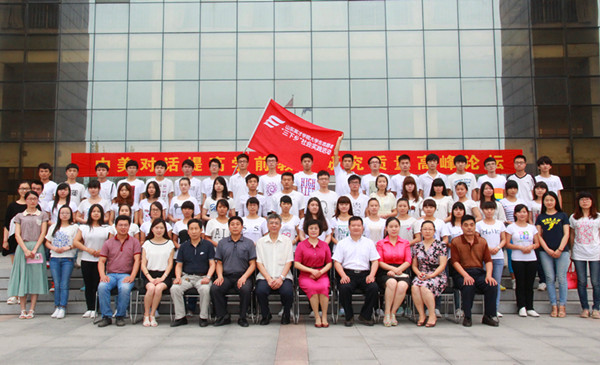 2014年暑期“三下乡”社会实践活动启动暨西部计划志愿者欢送仪式结束后,与会领导与志愿者代表赶往孔孟广场进行了合影留念。