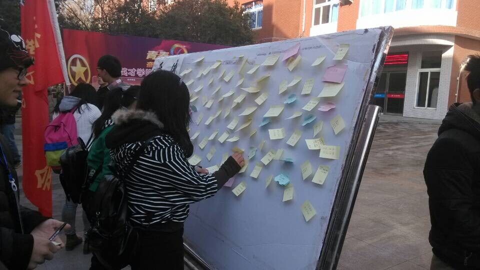 今天在山东英才学院大学生活动中心由山东英才学院十大学生组织共同响应第一个国家公祭日,并举办了本次活动,在这个令人难忘的日子大学生也没有这个血色的日子。近代大学生应该紧记国耻,发愤图强。十大学生组织九点半在大学生活动中心集合,进行分配任务。十点准时各个学生组织在事先准备好的便利贴上写下了属于自己对国耻的悲愤,对国耻的难以忘怀,以及写出了为报效国家,为中华效力。十大学生组织的成员随机在路上邀请山东大学在校生在为他们准备好的便利贴上写下了自己对中华的热爱,对国耻的难忘。本次活动历时三个小时,在十大学生组织为了大学生贴便利贴的板贴满了每位大学生对国耻的难忘,对中华的热爱。