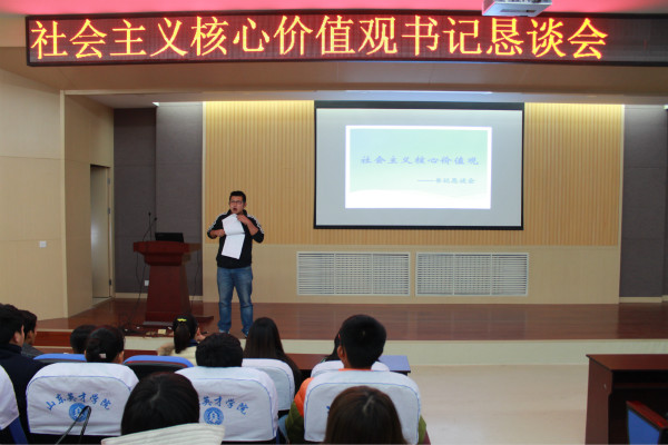 在2015年11月10号下午5点,商学院基层团委学生会在商学院二楼的学术报告厅举行了“第八届社会主义核心价值观书记恳谈会”,会议由邢辉书记主持,参加此次恳谈会的人员有各班级的班长以及学生会的常委团。