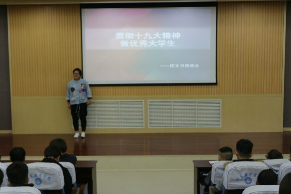 2017年11月18日在商学院2001教室,召开以“贯彻十九大精神,做优秀大学生”为主题的恳谈会,参加此次会议的有17级各班团支书。