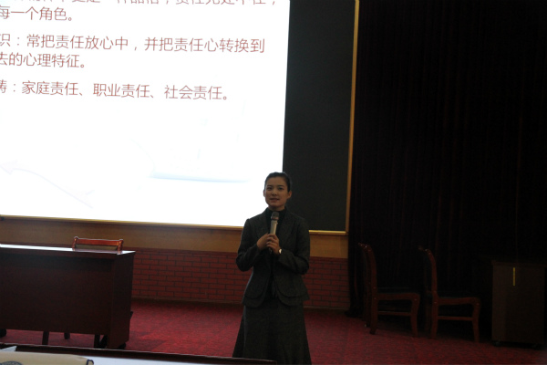 紧接着,岑文姣老师上台,简短而全面的自我介绍后,本次团课培训正式开始。起初,岑文姣老师以一则故事开篇,引出创业的培训主题并得出了“目标”的重要性,开始对培训的第一个方面进行了讲解,让学生们对创业有了新的认识。随后,在学生们有了新的创业思维后,一个简单而又短暂的视频,又一次让学生开始了新的思考,视频主要表达了:要创业,就要学会改变,并与时俱进。在讲到成功创业者的基本素质时,会场内开始了小声讨论,学生们的兴趣又一次接踵而来,对新的话题格外热情。