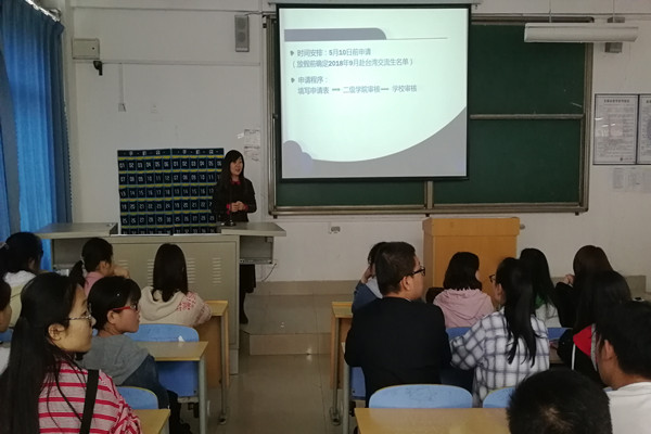 为了丰富大学生的学习生活,2018年4月25日中午,经济与管理学院学生赴台交流说明会在经管楼B-102、B-104教室召开,就广大学子到台湾院校开展交流学习活动进行宣传动员,会议由经济与管理学院徐贵丽教学副院长担任主讲人,经济与管理学院16级、17级各个本科和专科班代表参加。