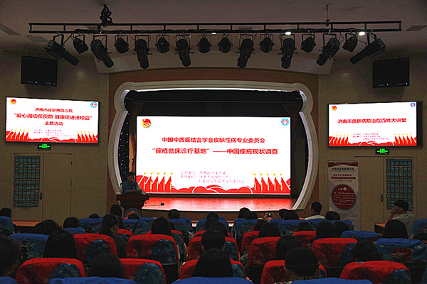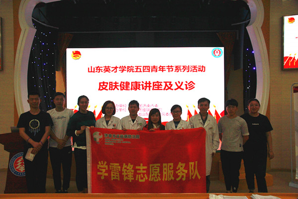 “五四青年节”来临之际,校团委联合济南市皮肤病防治院开展的“爱心涌动在皮防,健康促进进校园”主题活动于5月3日中午12时在学前教育学院小剧场举办。出席本次活动的专家有: 济南市皮肤病防治院门诊部主任李绥、皮肤科主任史克实、医学美容科主任王晓林、医师阮振强及新闻办主任丁娜。各二级学院师生代表也积极参加了此次活动。